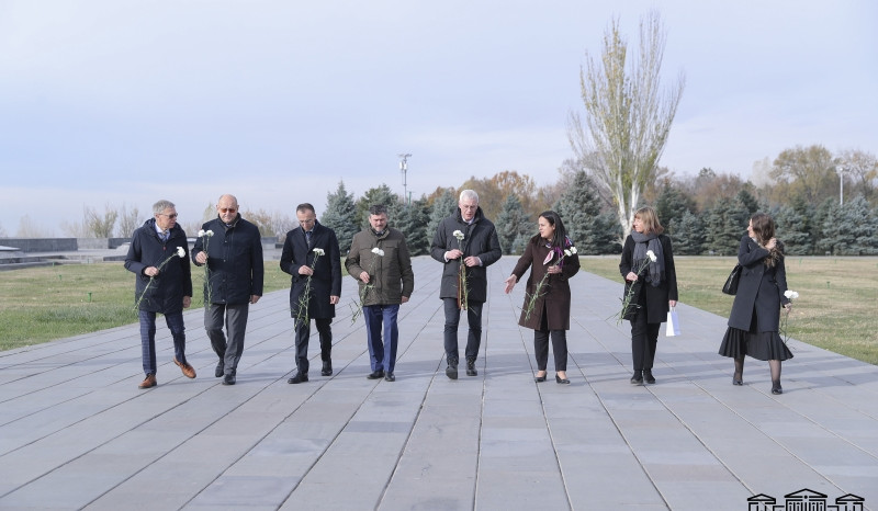 Vahaqn Xaçaturyan Türkmənistanda Neytrallıq Memorialı Kompleksinin önünə əklil qoyub