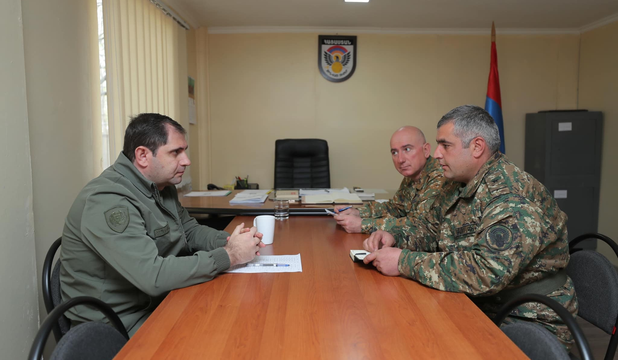 Suren Papikyan MN hərbi hissəsinin zabitləri ilə söhbətində SQ-nin döyüş qabiliyyətinin artırılması istiqamətində görülən işlərə toxunub