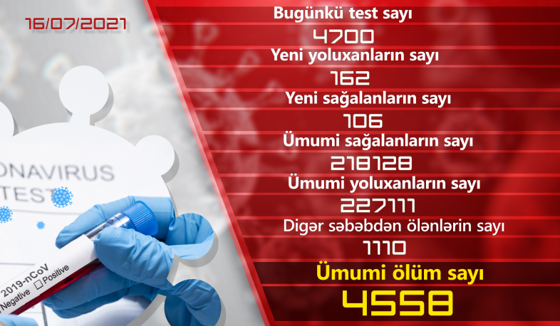 Ermənistanda son sutka ərzində koronavirusa 162 yoluxma halı qeydə alınıb