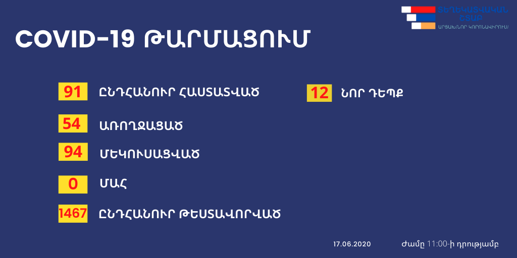 According to the Ministry of Health of the Artsakh Republic, the infection of the new coronavirus has been confirmed in another 12 citizens. They are all from the Hadrut region, the hearth of the same outbreak.