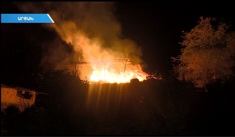 One private house was completely destroyed and the neighboring building burned down as a result of the shelling in Stepanakert tonight. The "Lurer" film crew was at the scene.