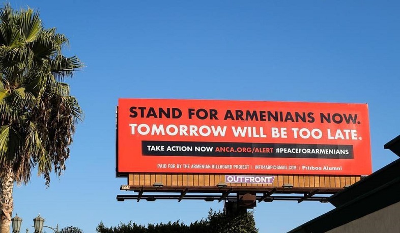 Pro-Armenian posters calling for Artsakh's recognition and peace were posted in the streets of US settlements.