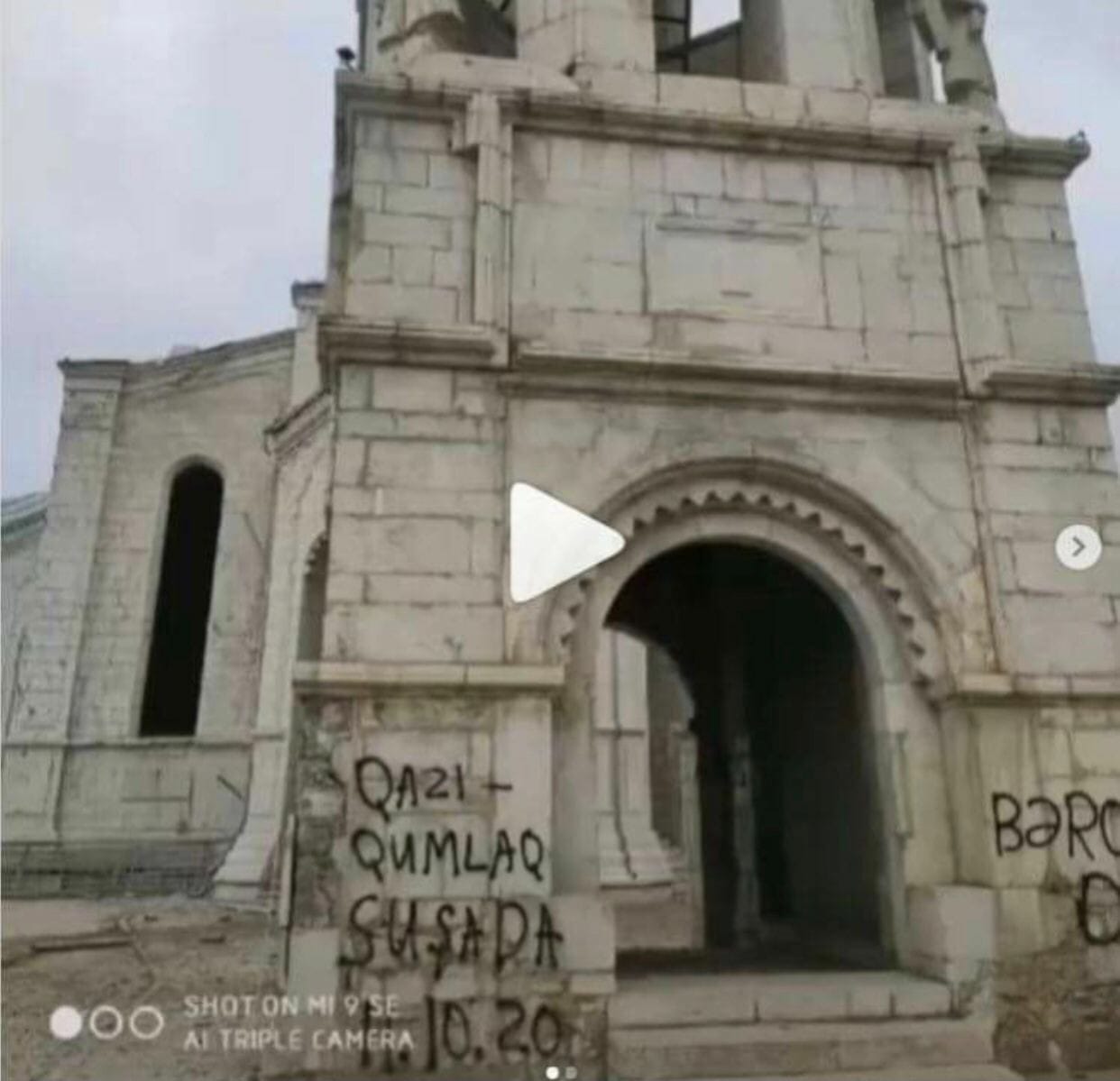 "We are saddened to learn that after the announcement of the joint statement of the leaders of Armenia, Azerbaijan and Russia on the cessation of hostilities in Artsakh, the Azeris who entered the Artsakh city of Shushi, desecrated the Ghazanchetsots Church in Shushi, leaving their marks on the church's exterior and interior walls", the Mother See of Holy Etchmiadzin informs about that.