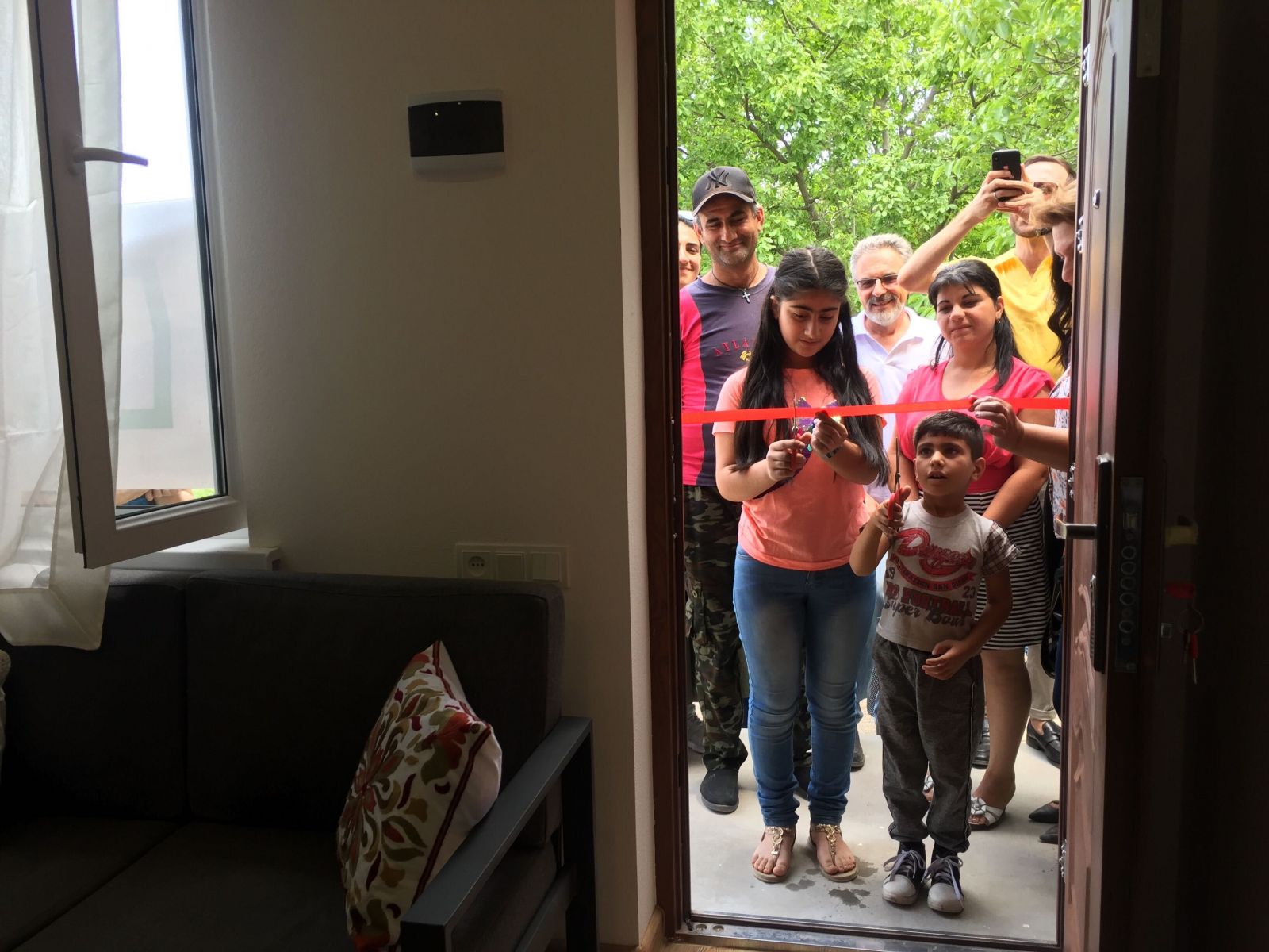 Family, friends, and fellow villagers joined the Armenian Resettlement Coalition (ARC) partner organizations as they cut the ribbon on the fourth and fifth family’s new homes in Nerkin Karmiraghbyur, Tavush Province, Armenia. Local officials from both the village and the Berd Consolidated Community welcomed the Avetisyan and Ayvazyan families.