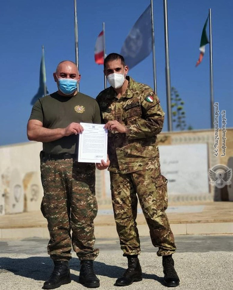 The Armenian peacekeeping contingent in Lebanon (Major Karen Davtyan is the contingent’s commander) has been praised by the Italian command and been awarded a letter of appreciation for excellent service and exemplary discipline, the Ministry of Defense of Armenia reports.