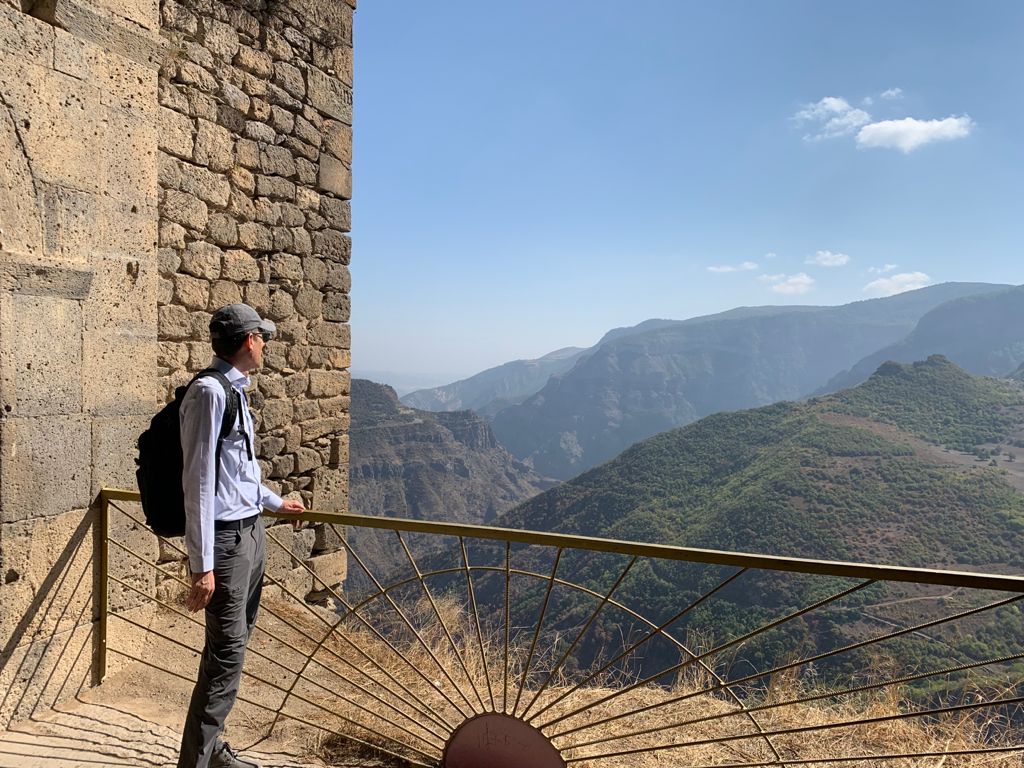 The US Embassy informs that Chip Laitinen and his traveling partners, all new to Armenia, enjoyed the picturesque landscape of the Syunik region and could not miss the spectacular view of the Tatev Monastery.