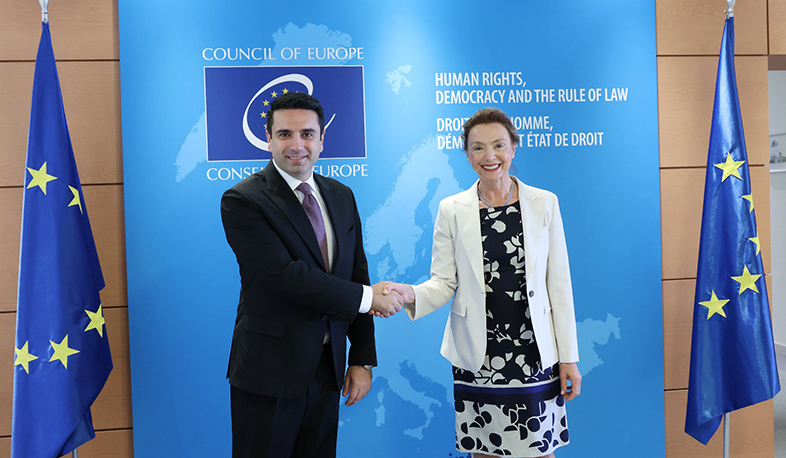 On June 10, the President of the Armenian Parliament Alen Simonyan, who is in Strasbourg on a working visit met with the Council of Europe (CoE) Secretary General Marija Pejčinović Burić. The sides talked about the procedure of solving some issues voiced at the previous meeting. In particular, the implementation of the RA-CoE Action Plan for Armenia 2019-2022 was in the core of discussion.