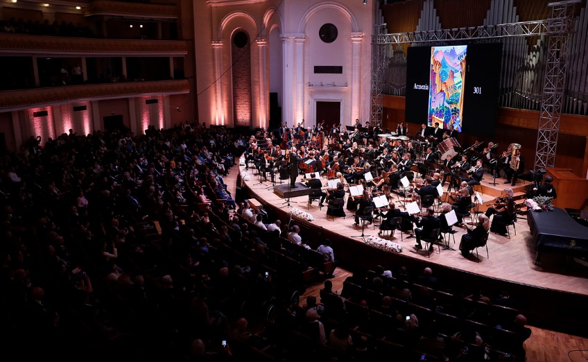 Prime Minister of Armenia Nikol Pashinyan, together with his wife Anna Hakobyan, attended the charity concert of the Russian National Philharmonic Orchestra, conducted by world-famous conductor Vladimir Spivakov, at Aram Khachaturyan Concert Hall.