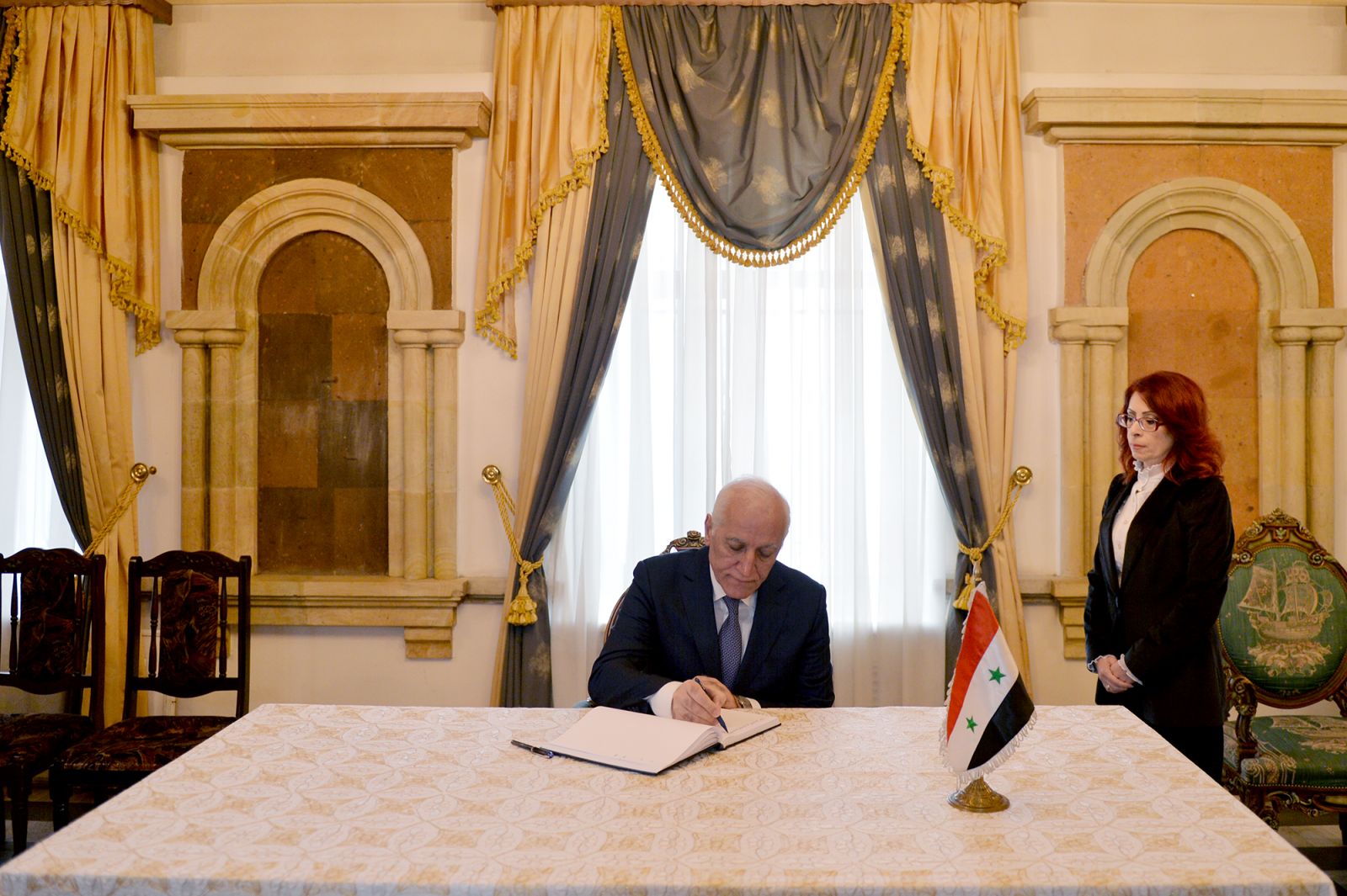 President of Armenia Vahagn Khachaturyan visited the Embassy of the Syrian Arab Republic in Armenia and wrote a note in the book of condolences opened on the occasion of the earthquake in Syria that claimed hundreds of lives, left many injured and caused enormous damage.