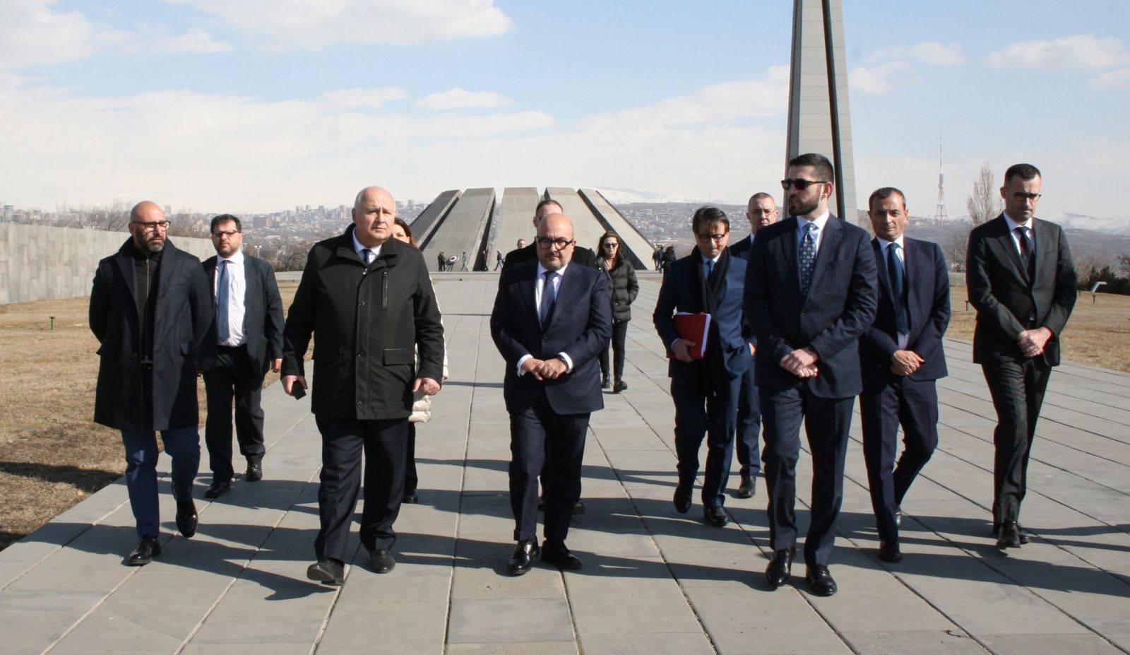 On February 22, the delegation led by the Minister of Culture of Italy, Gennaro Sangiuliano, visited the Armenian Genocide Memorial accompanied by the Deputy Minister of Education, Science, Culture and Sports of the Republic of Armenia Alfred Kocharyan, the Head of the Department of Foreign Relations and Diaspora Arkadi Papoyan, the Ambassador of the Republic of Armenia to Italy Tsovinar Hambardzumyan and the Ambassador of Italy to Armenia Alfonso di Riso.