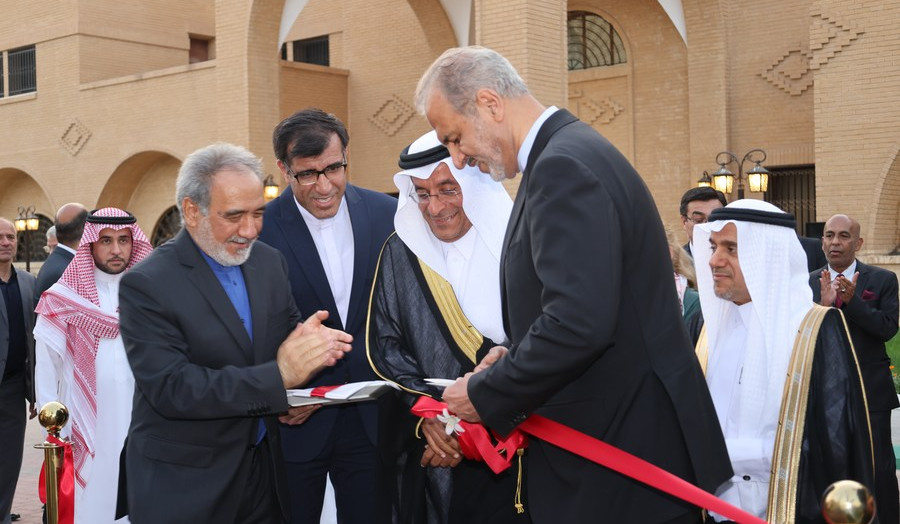 Iranian Deputy Foreign Minister Alireza Bigdeli and Saudi Deputy Minister of Foreign Affairs for Consular Affairs Ali Al-Yousef cut the ribbon at the opening ceremony in the Saudi capital of Riyadh.