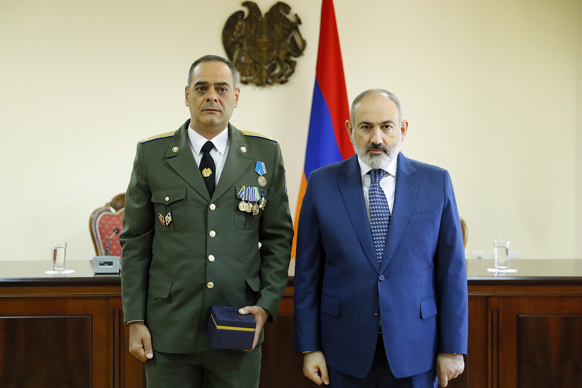 A group of employees of the State Protection Service were awarded with the Prime Minister's commemorative medal by Prime Minister Nikol Pashinyan for their dedication, conscientious and efficient work while performing their service duties and were encouraged with a letter of appreciation from the Prime Minister and valuable gifts.