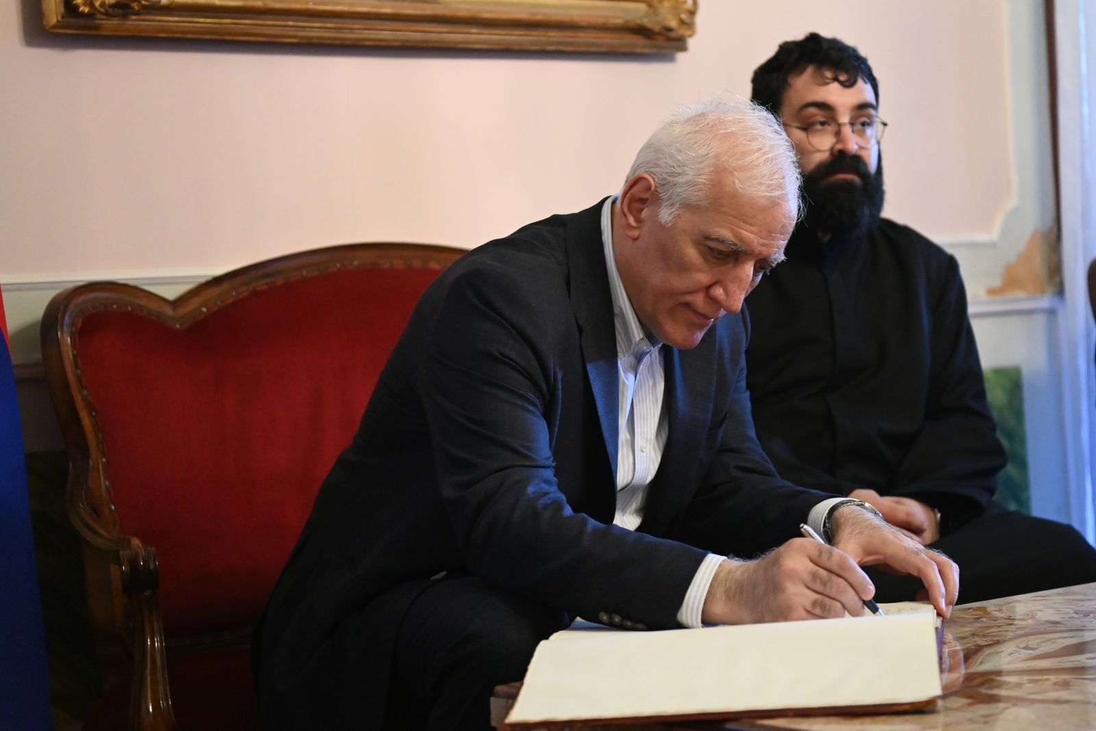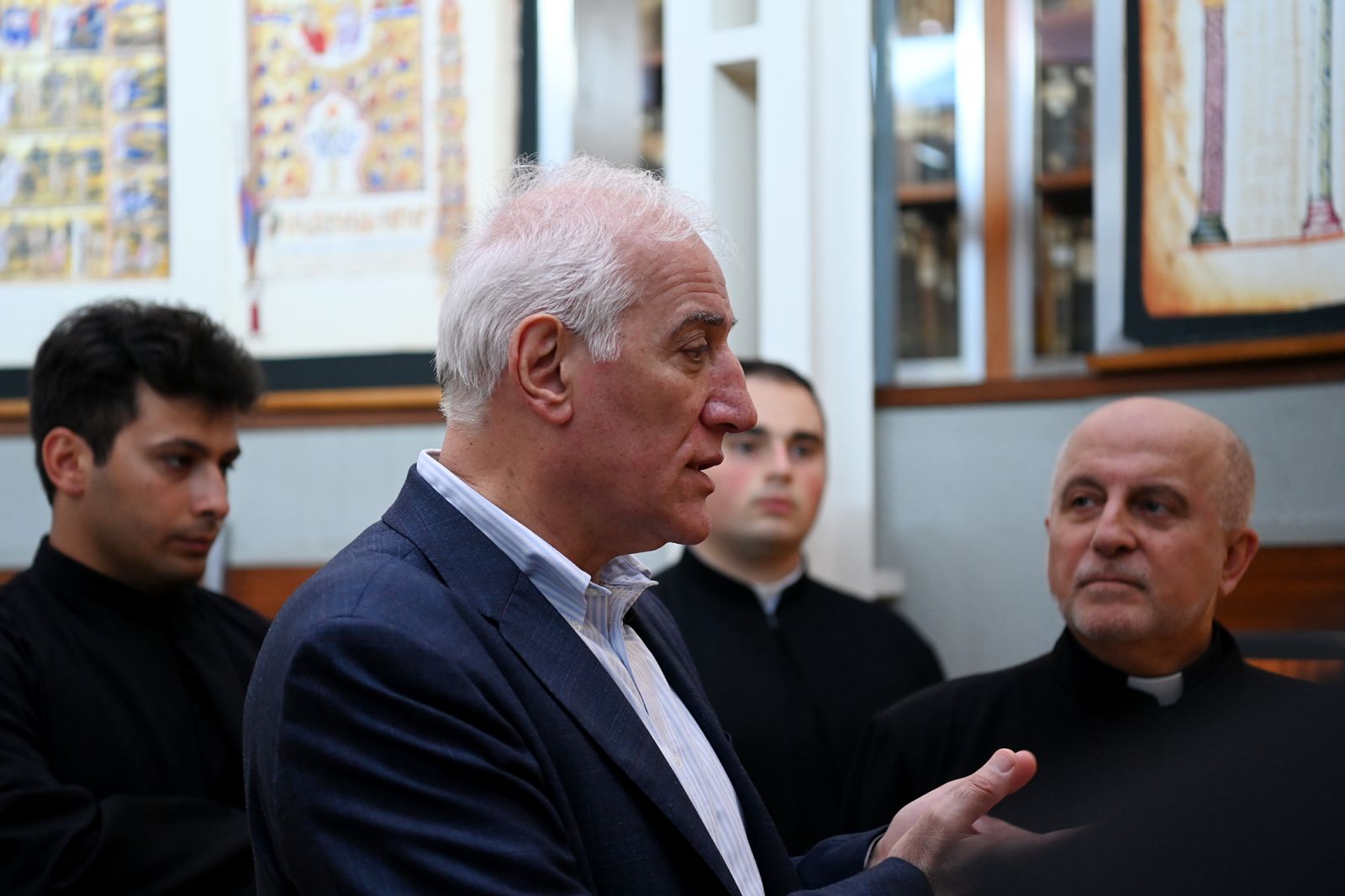 The Armenian delegation led by President Vahagn Khachaturyan visited Saint Lazarus Island, met with the Fathers of the Mkhitarist Congregation and familiarized himself with the center's valuable cultural heritage and current activities. The President talked with the fathers of the Congregation and representatives of the Armenian community in a frank atmosphere and answered their questions. President Khachaturyan emphasized that he is ready to support and contribute to the popularization and development of the religious and cultural center.