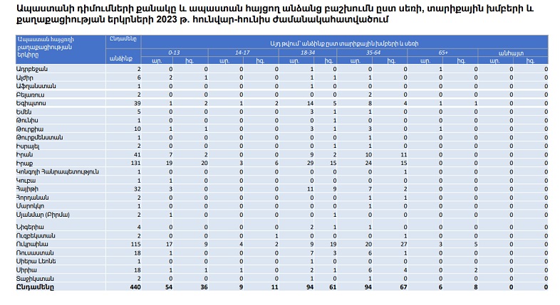 440 people applied for asylum in the Republic of Armenia in January-June., 2023. The Migration and Citizenship Service of the Armenia's Ministry of Internal Affairs reports.