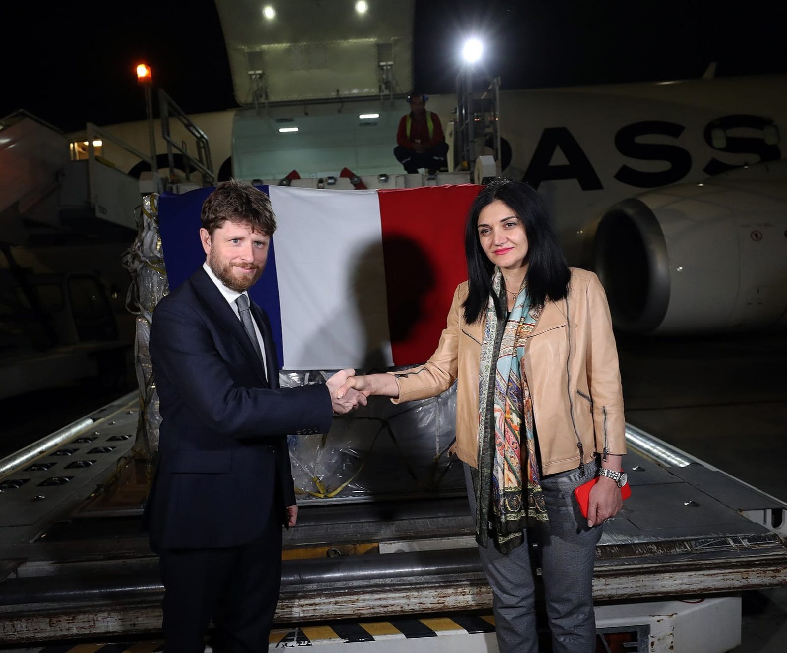 Armenia’s Deputy Minister of Healthcare Lena Nanushyan and French Ambassador to Armenia Olivier Decottignies personally inspected the transfer.