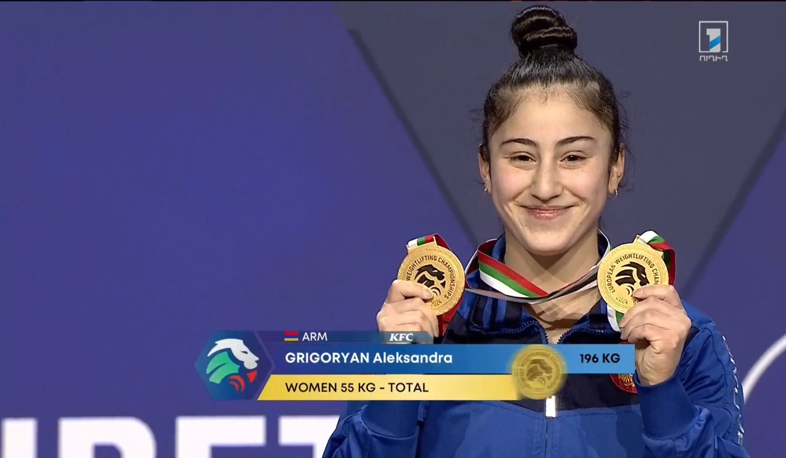 The Armenian snatched the gold in the 55 kg category with a total result of 196 kg. She also won a small gold medal in the clean and jerk event.