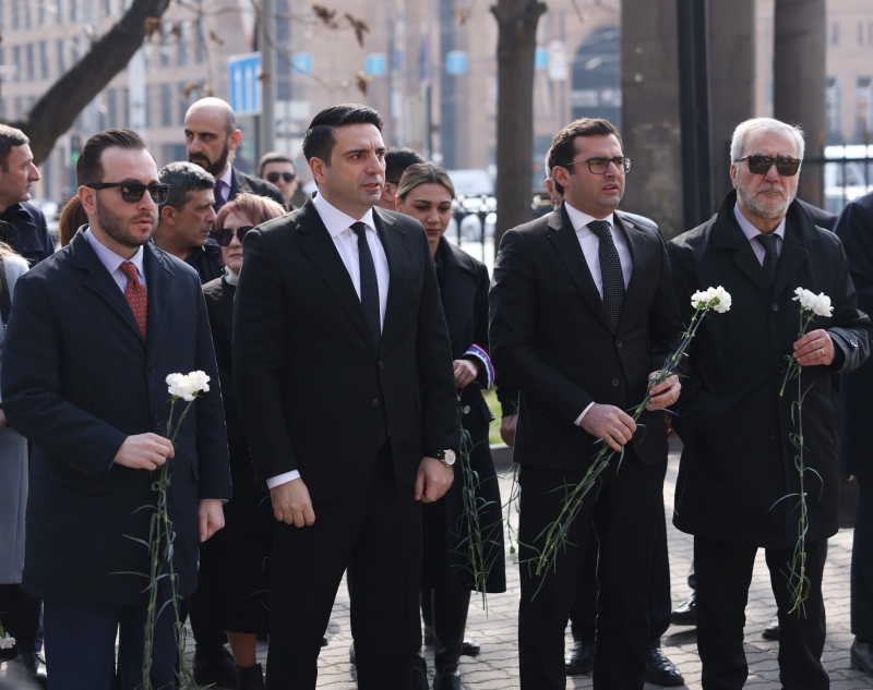 The President of the National Assembly of the Republic of Armenia Alen Simonyan and the deputies of the Civil Contract Faction laid flowers at the Influence and Counteraction monument erected in the park adjacent to Grigor Lusavorich Street in Yerevan, paying tribute to the memory of March 1, 2008 victims.