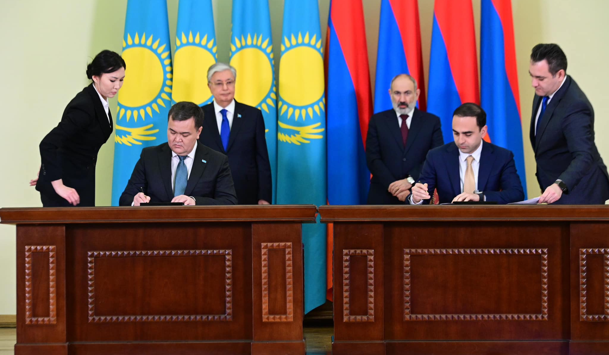 An agreement "On cooperation between Yerevan and Astana and becoming sister cities" was signed at the President's residence. The signatories are Yerevan Mayor Tigran Avinyan and Astana Mayor (Äkım) Zhenis Kassymbek.