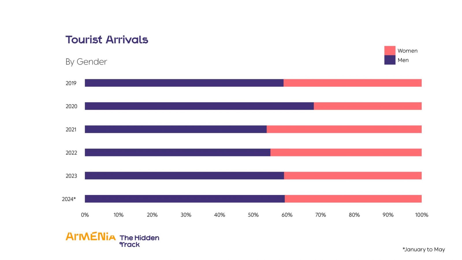 Of all tourists, 42% of tourists were from Russia, 14% were from Georgia, and 7% more came from Iran.