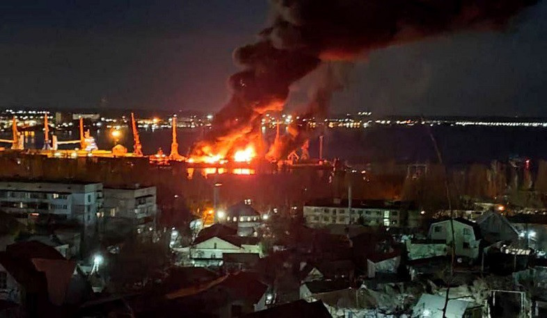 A fire broke out in a large oil warehouse in the city of Teodosiya, Crimea, allegedly as a result of an attack by Ukrainian drones at night.