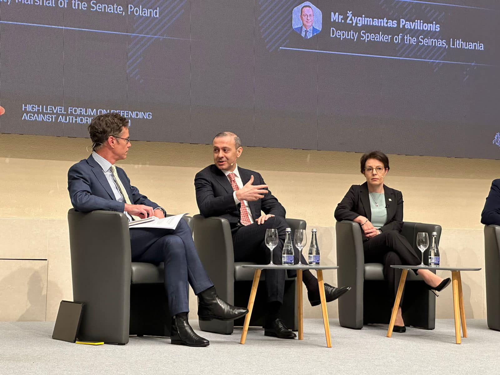 During the forum, the Secretary of the Security Council mentioned the comprehensive democracy reforms implemented in Armenia, stressing their priority for Armenia's Government and emphasizing their role in contributing to the increase of the country's resilience.