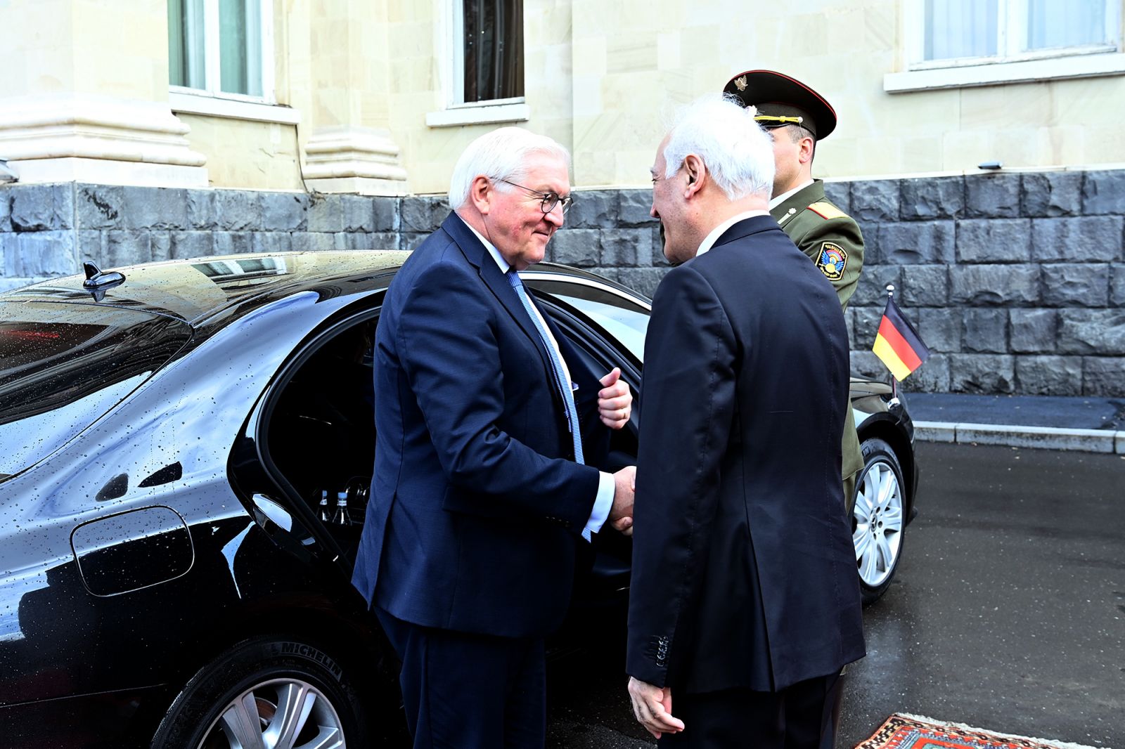Armenia's President Vahagn Khachaturyan welcomed his German counterpart.