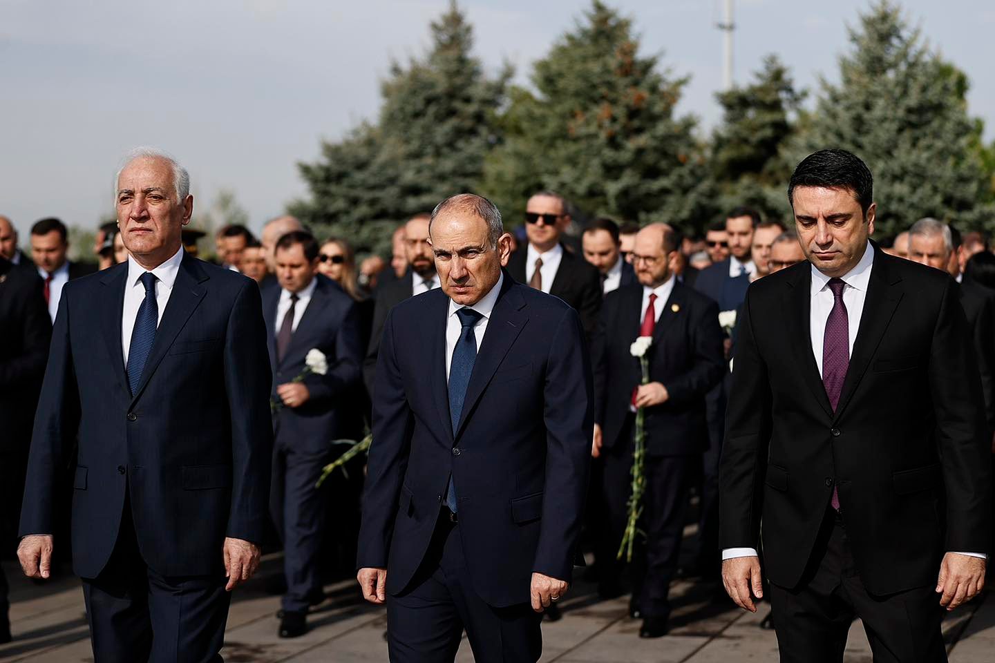 The Armenian leadership laid wreaths at the memorial and placed flowers at the eternal flame commemorating the victims of the Armenian Genocide. Armenian Prime Minister Nikol Pashinyan, President Vahagn Khachaturyan, National Assembly Speaker Alen Simonyan were among them.