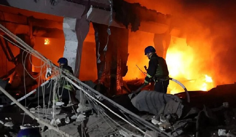 Fallen debris was found around the city, Tkachenko added, describing the attack as "Russian peace in all its glory."