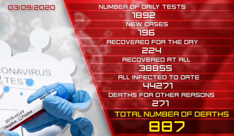 Update. 03.09.2020. 196 new cases of infection with coronavirus have been confirmed, 224 have recovered