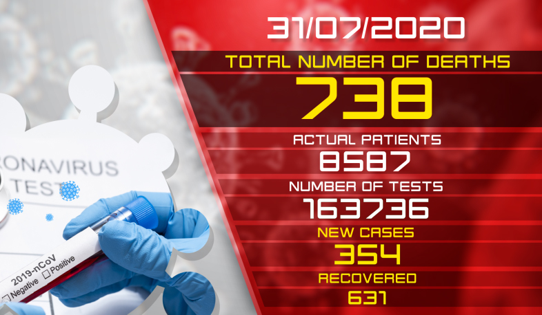 Update. 31.07.2020. 354 new cases of infection with coronavirus have been confirmed, 631 have recovered