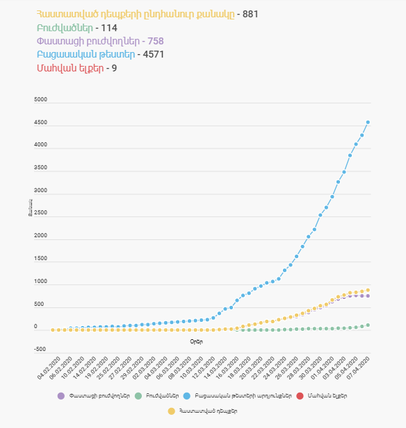 Նա նշել է, որ առողջացմամբ դուրս է գրվել 27 քաղաքացի: Բուժվածների ընդհանուր թիվը 114 է, հիվանդանոցում գտնվողներինը՝ 758: