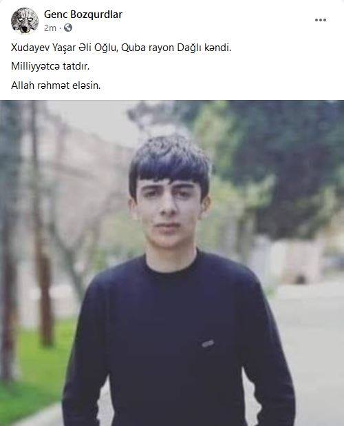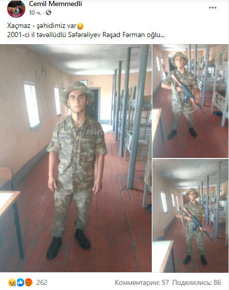«Ծանր մարտում զոհվել է Սաֆարալիև Ռաշադ Ֆերման օղլուն: Ծնվել է 2001 թվականին»: