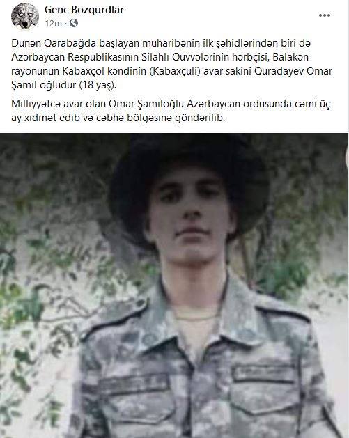 «Քուրադաև Օմար Շամիլը 18 տարեկան է, ազգությամբ՝ ավար: Զորակոչվել է Կաբախչոլ գյուղից»:
