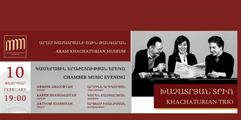 Փետրվարի 10-ին՝ ժամը 19:00-ին, Արամ Խաչատրյանի տուն-թանգարանում տեղի կունենա կամերային երաժշտության համերգ: Այս մասին հայտնում են ՀՀ ԿԳՄՍ նախարարությունից: