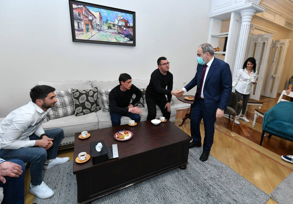 ՀՀ վարչապետ Նիկոլ Փաշինյանը տիկնոջ՝ Աննա Հակոբյանի հետ հյուրընկալել է պատերազմի մասնակից զինվորների հերթական խմբին: