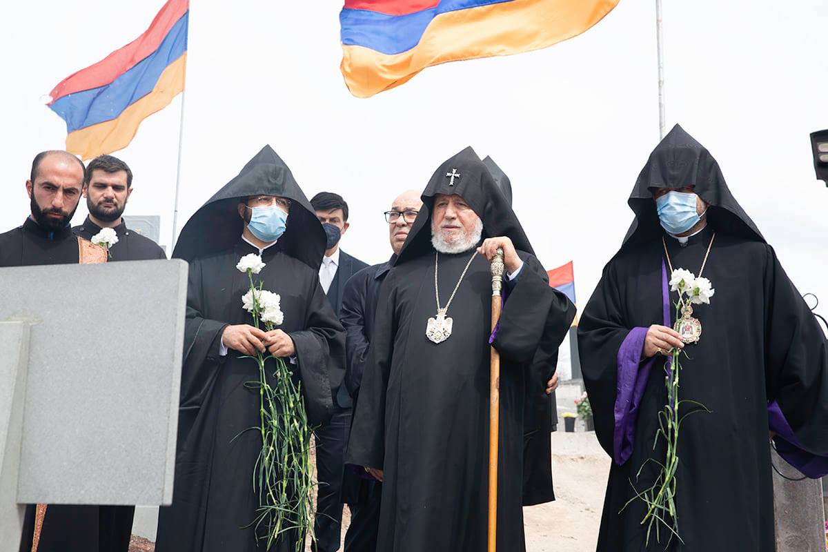 Ծաղկեպսակի զետեղումից հետո Ամենայն Հայոց Հայրապետը աղոթք բարձրացրեց առ Ամենակալ Աստված՝ հանուն հայրենիքի խաղաղ ու անվտանգ կյանքի նահատակված քաջորդիների հոգիների հանգստության համար։