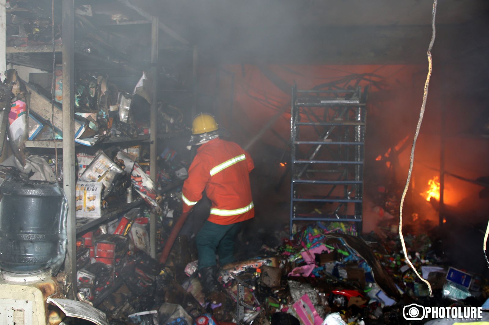 Հրդեհը մեկուսացվել է ժամը 06:24-ին։ Այրվել են խաղալիքների և տնտեսական ապրանքների տաղավարներ՝ գույքով: