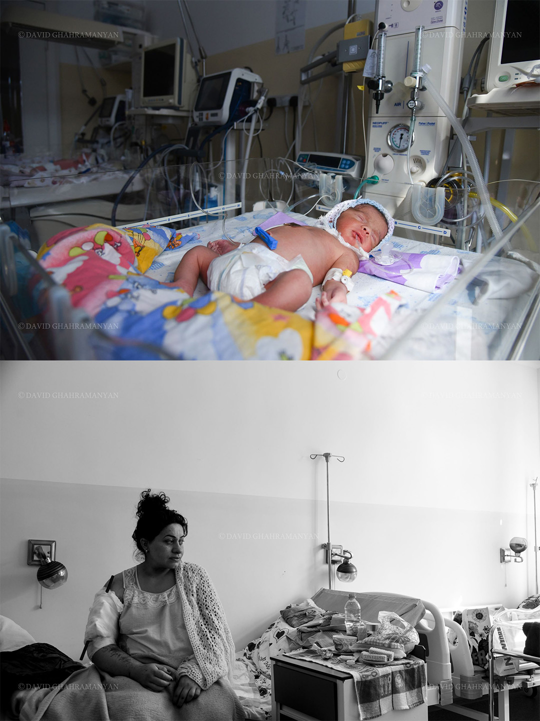 «Կհիշեք, պատերազմի առաջին օրերին ծնված Մոնթեն է ու մայրը։ Ամսի 28-29-ն էր։ Դեռ ժամանակը չէր, որ երեխան ծնվեր։ Լուսանկարի կինը Մատաղիսից էր, քանի որ հրետակոծությունները այնտեղ ինտենսիվ էին, որոշել էին հարևանի ավտոյով գալ Ստեփանակերտ։ Կինը պատմեց՝ ճանապարհին ավտոյի մոտ արկ է ընկել, շուռ են եկել ձորը, ձեռքը ջարդվել էր, մի կերպ հանել են ավտոյից, ուրիշ ավտոյով հասցրել Ստեփանակերտ, երեխային, բարեբախտաբար, կարողացել են փրկել։ Կինն անընդհատ պատուհանից դուրս էր նայում, չգիտեինք՝ ինչու, պիտի որ ուրախ լիներ՝ երեխան փրկվել է։ Հետո պարզվեց՝ ամուսինն առաջնագծում կռիվ է տալիս․ մտքով էնտեղ էր»։