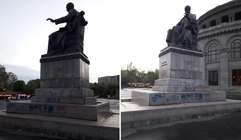 ՀՀ ԿԳՄՍ նախարարության «Պատմամշակութային արգելոց-թանգարանների և պատմական միջավայրի պահպանության ծառայություն» ՊՈԱԿ-ից տեղեկանում ենք՝ ՊՈԱԿ-ի տնօրեն Արա Թարվերդյանը և մայրաքաղաքի Կենտրոն վարչական շրջանի կոմունալ ծառայության բաժնի պետի տեղակալ Վարդան Աթաբեկյանն այսօր տեղում ծանոթացել են անվանի կոմպոզիտոր Ալեքսանդր Սպենդիարյանի արձանի պատվանդանին տարբեր գույնի ներկով խզբզոցին