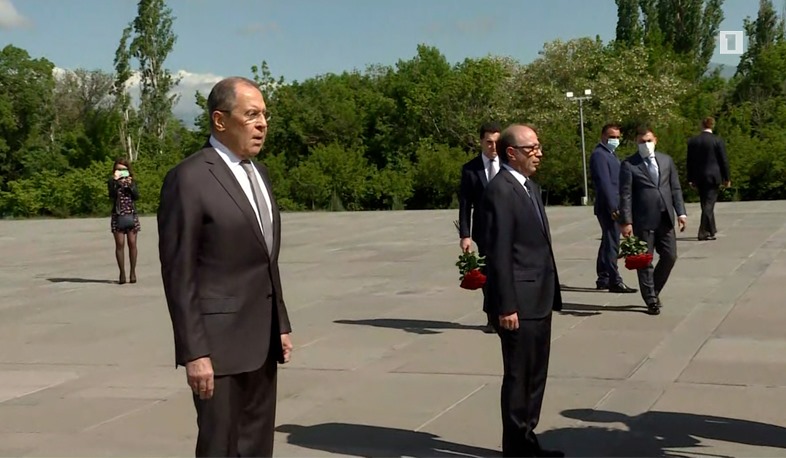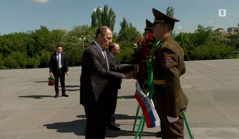 Հուշահամալիրում Սերգեյ Լավրովին դիմավորել է ՀՀ արտգործնախարարի պաշտոնակատար Արա Այվազյանը: Լավրովը և Այվազյանը ծաղկեպսակներ են դրել հուշահամալիրի պատին, ինչպես նաև ծաղկեփունջ՝ հուշահամալիրի անմար կրակի մոտ: