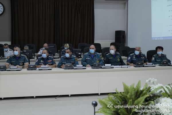 Խորհրդակցության ընթացքում զեկույցներով են հանդես եկել նաև ԱԻՆ ՓԾ բժշկական ապահովման վարչության պետի տեղակալ Արմինե Բոսնոյանը, թիկունքի և նյութատեխնիկական ապահովման վարչության պետ Մհեր Մնացականյանը, մարզային փրկարարական վարչությունների պետերը: