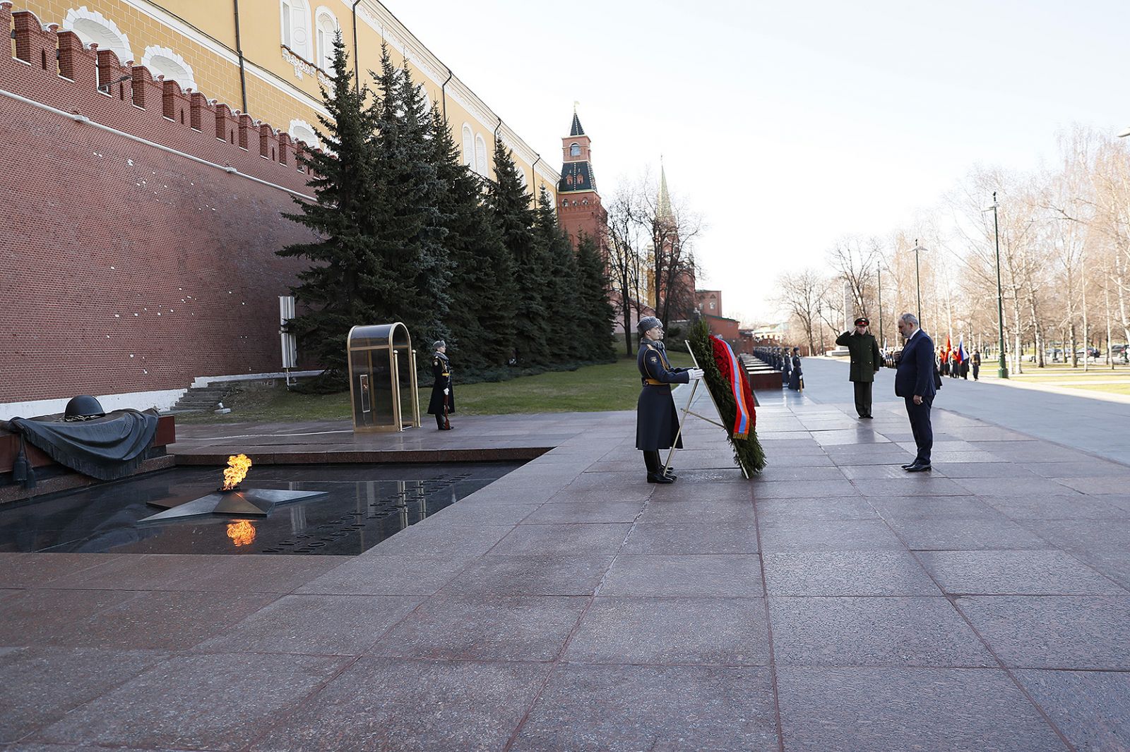 Ապրիլի 20-ի առավոտյան վարչապետ Փաշինյանն այցելել է Մոսկվայի Ալեքսանդրի այգի, որտեղ ծաղկեսպակ է դրել Անհայտ զինվորի հուշահամալիրին և հարգանքի տուրք մատուցել: