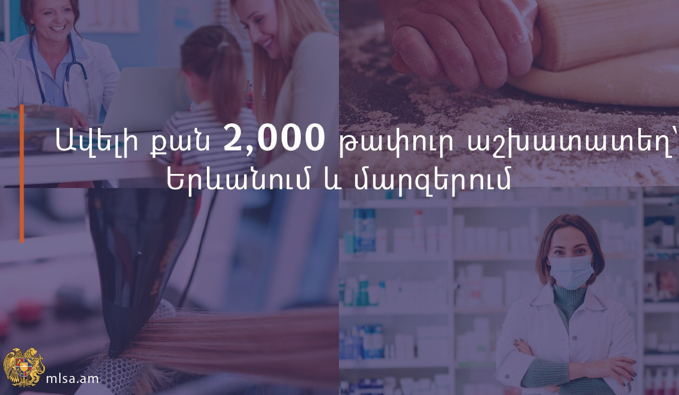 ՀՀ աշխատանքի և սոցիալական հարցերի նախարարությունից տեղեկացնում են, որ նախարարության Միասնական սոցիալական ծառայություն, ապրիլ ամսվա դրությամբ, գործատուների կողմից ներկայացվել է Երևանում և մարզերում առկա շուրջ 3 000 թափուր աշխատատեղ։