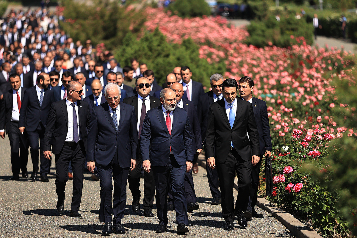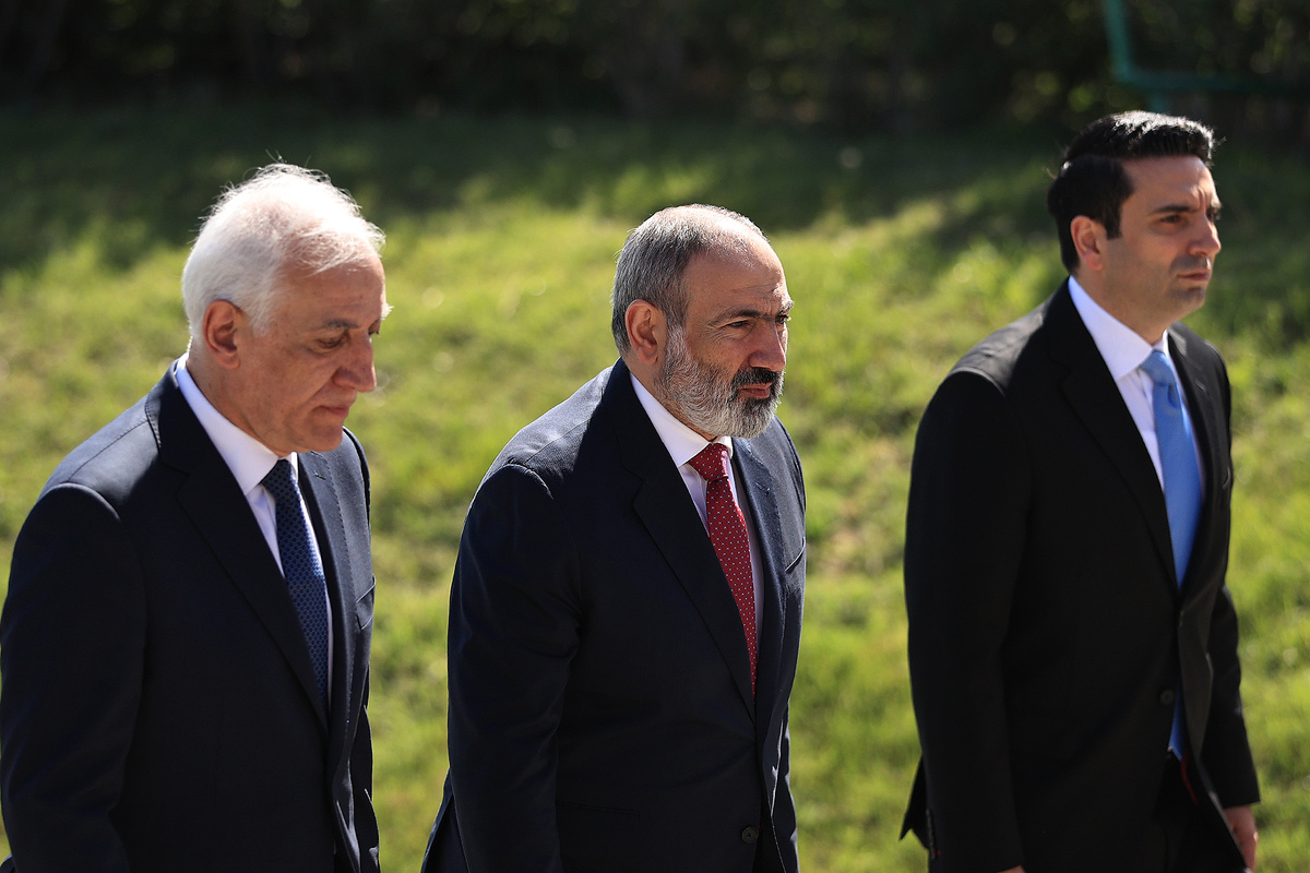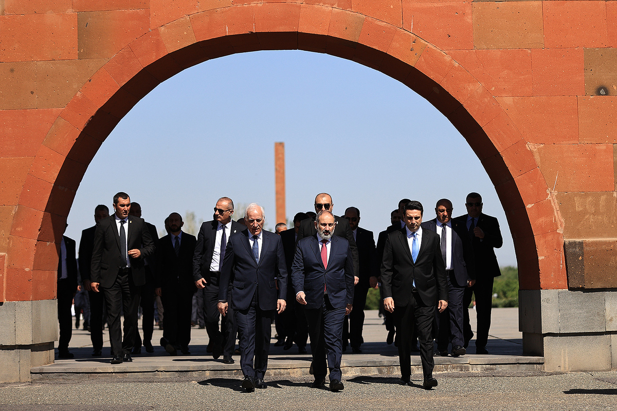 ՀՀ վարչապետ Նիկոլ Փաշինյանը նախագահ Վահագն Խաչատուրյանի, Ազգային ժողովի նախագահ Ալեն Սիմոնյանի, ՀՀ բարձրագույն ղեկավարության և Հայաստանում հավատարմագրված դիվանագիտական ներկայացուցչությունների ղեկավարների հետ Հանրապետության տոնի կապակցությամբ այցելել է Սարդարապատի հերոսամարտի հուշահամալիր: