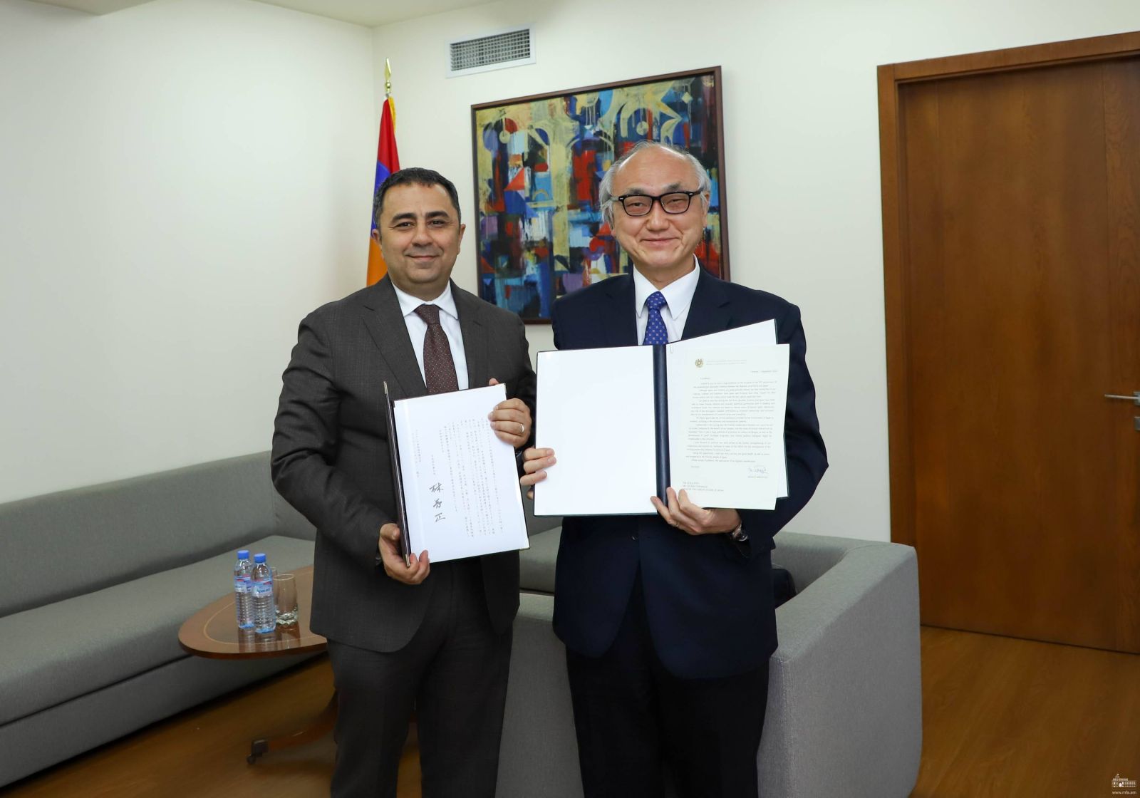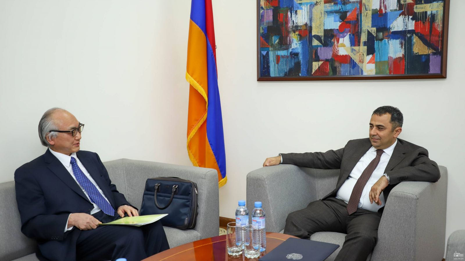 Հանդիպման սկզբում նախարարի տեղակալը և դեսպանը փոխանակել են Հայաստանի և Ճապոնիայի վարչապետների, ինչպես նաև ԱԳ նախարարների շնորհավորական նամակները՝ դիվանագիտական հարաբերությունների հաստատման 30-ամյակի կապակցությամբ՝ նշելով տարեդարձի կարևորությունը երկկողմ օրակարգն առավել զարգացնելու տեսանկյունից։