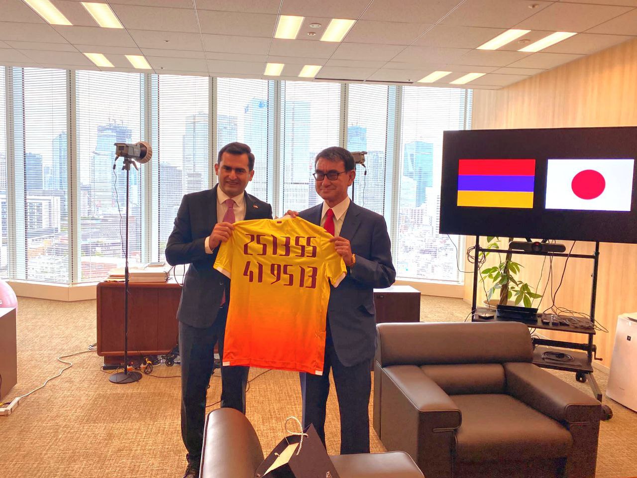 Թվայնացման նախարար Տարո Կոնոն 2018 թ․ այցելել էր Հայաստան՝ որպես Ճապոնիայի արտաքին գործերի նախարար։ Հանդիպման սկզբում նա նշեց, որ ծանոթ է Հայաստանի զարգացումներին բարձր տեխնոլոգիաների և թվայնացման ոլորտներում և ուրախ կլիներ համագործակցության զարգացմանը։ Մանրամասն ներկայացնելով վերջին տարիներին Հայաստանում տեղի ունեցող դրական զարգացումները տեխնոլոգիական ոլորտում` նախարարին առաջարկեցի դիտարկել ճապոնական տեխնոլոգիական ընկերությունների մուտքը Հայաստան, որը կարող է խթան հանդիսանալ հայկական և ճապոնական ընկերությունների միջև գործունեության զարգացմանը։