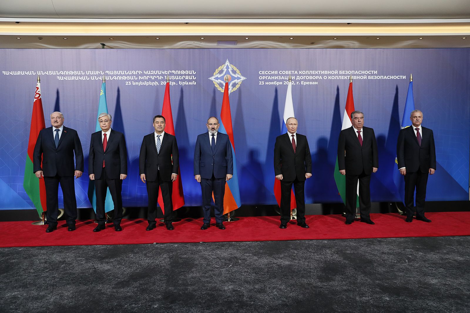 Երևանում տեղի է ունեցել ՀԱՊԿ Հավաքական անվտանգության խորհրդի հերթական նիստը՝ ՀՀ վարչապետ Նիկոլ Փաշինյանի նախագահությամբ: Նախ տեղի են ունեցել պետությունների առաջնորդների դիմավորման և տեսալուսանկարահանման արարողությունները, այնուհետև Հայաստանի, Ռուսաստանի, Բելառուսի, Ղազախստանի, Տաջիկստանի և Ղրղզստանի առաջնորդները նեղ կազմով նիստում քննարկել են օրակարգում ընդգրկված հարցերը: