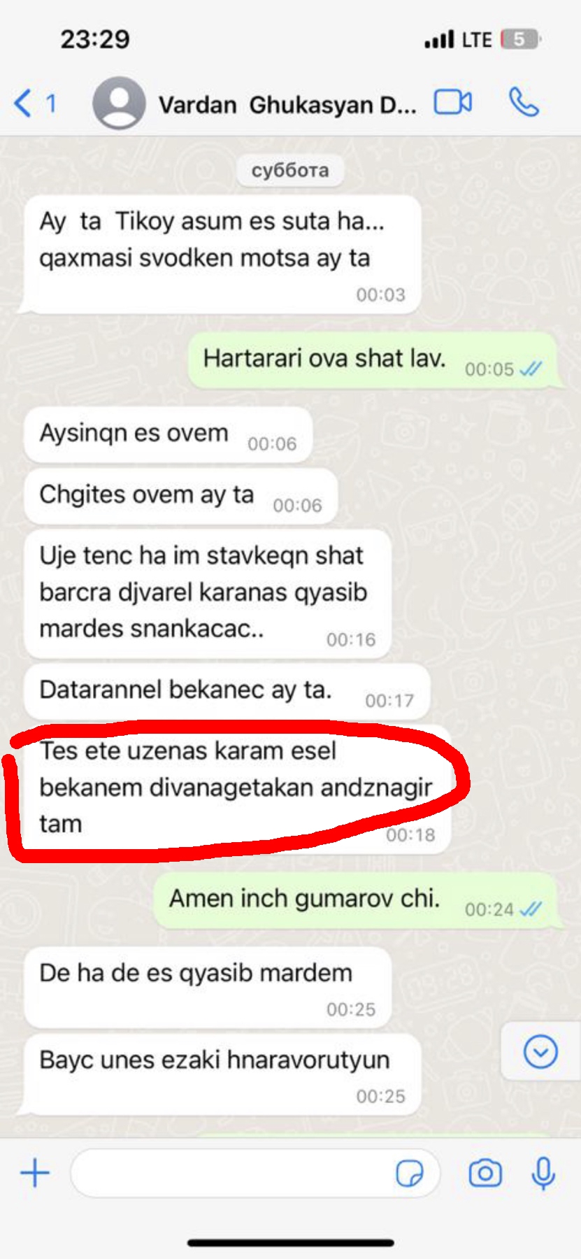 Ստորև ներկայացվում են քրեական վարույթի շրջանակներում ձեռք բերված՝ բջջային հավելվածի միջոցով գիշերային ակումբի ներկայացուցչի, ինչպես նաև Տ․Ա․-ի հետ (վերջիններիս համաձայնութամբ) Վարդան Ղուկասյանի ունեցած խոսակցության՝ վերաբերելի և կարևոր հատվածների էկրանապատկերները»,- ասված է հաղորդագրության մեջ։