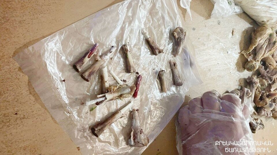 Արդյունքում՝ հանձնուքում առկա տապակած հավի ոսկորների միջից հայտնաբերվել է ընդհանուր 2,43 գրամ կասկածելի զանգվածներով 8 պոլիէթիլենային փաթեթ: Փաթեթներից երեքում առկա են եղել մեթամֆետամին տեսակի թմրամիջոցին նմանվող, ընդհանուր 1,2 գրամ քաշով, սպիտակ, բյուրեղանման զանգվածներ, իսկ հինգում՝ կոկաին տեսակի թմրամիջոցին նմանվող, ընդհանուր 1,23 գրամ քաշով, սպիտակ զանգվածներ:
