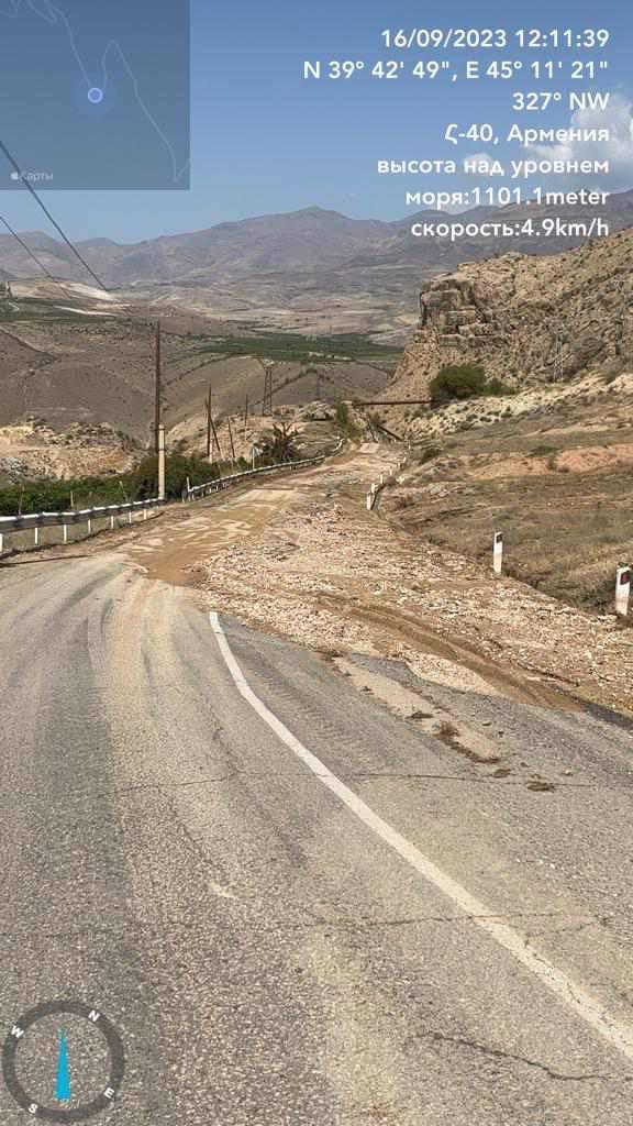 «Ճանապարհային դեպարտամենտ» հիմնադրամը տեղեկացնում է, որ այսօր Հ-40 /Մ-2/ (Արենի) - Խաչիկ - Գնիշիկ - Եղեգնաձոր ավտոճանապարհին ջրագծի վթարի պատճառով առաջացել են հողային բերվածքներ, ինչի հետևանքով ճանապարհահատվածը երկկողմանի փակ է։